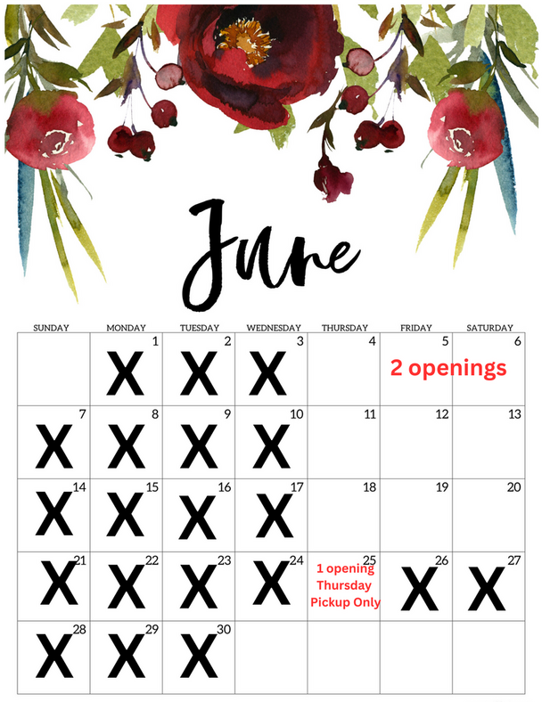 Orders are taken on a Thursday thru Saturday basis ONLY
